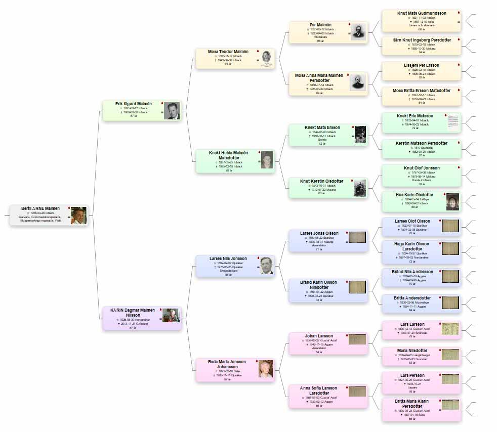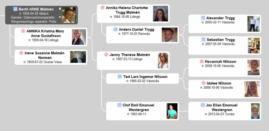 Här kommer bilder på mina ättlingar och anfäder. Det är av utrymmesskäl och läsbarhet svårt att få med mer anor men dom sträcker